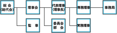 組合の意思決定や業務の執行を行うための組織には、総会、理事会等の機関が定められているほか、必要によって委員会などの任意機関を設けることもできます。一般的な組織は次のようなものです。